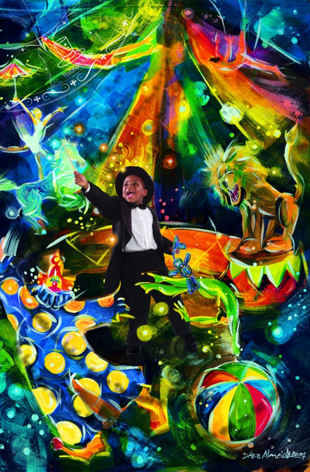 Nossa proposta foi trabalhar elementos gráficos e fotografia. Para isso contamos com o super talento fotográfico do Carlão da Click e da sensibilidade e fantasia do artista plástico Décio Almeida.